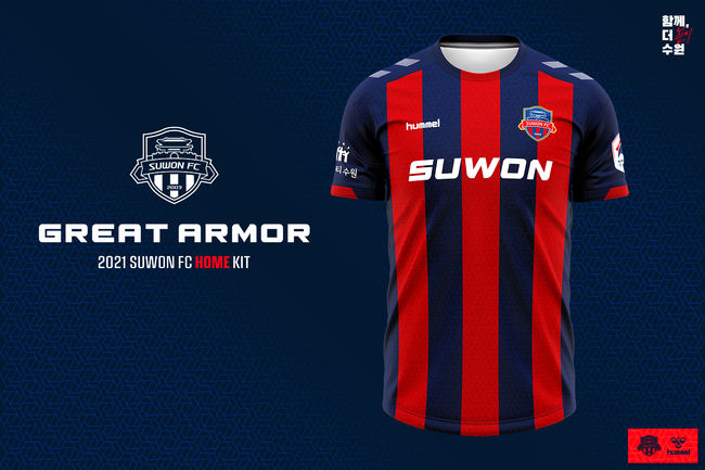 2021시즌 유니폼 콘셉트는 ‘Great Armor’로 강렬한 갑옷이라는 뜻으로, 콘셉트에 따라 올 시즌 유니폼에는 수원화성 성벽을 모티브로 갑옷을 연상케 하는 패턴을 삽입했다. 올 시즌 더욱 매섭고 단단한 축구를 펼치겠다는 수원FC의 각오를 보여준다.