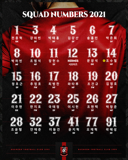 부천FC1995가 2021시즌 선수단 등번호를 확정했다.