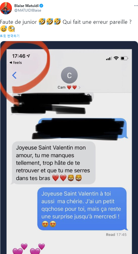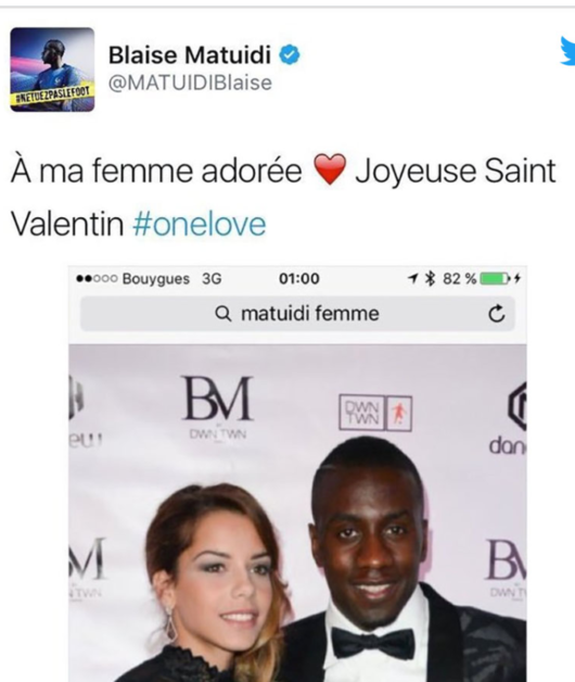 블레이지 마투이디는 15일(한국시간) SNS를 통해 "내 사랑하는 아내에게! 행복한 발렌타인 데이가 됐으면 해. 내 영원한 사랑"이라고 로맨틱한 인사를 남겼으나 아내의 불호령을 듣게 됐다.