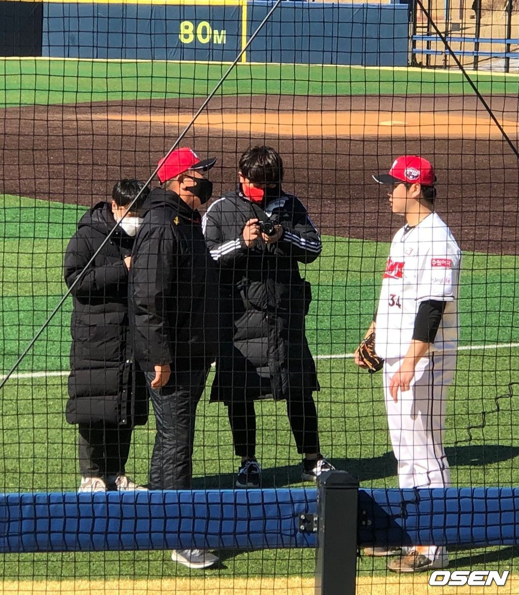 19일 KT 위즈의 스프링캠프가 열리고 있는 부산 기장 현대차드림볼파크. 이강철 감독이 ‘인스트럭터 자격’으로 초청한 선동열 전 감독이 불펜 피칭을 처음으로 참관하는 날이기도 했다. 선 전 감독의 날카로운 시선이 KT 투수들을 향했다. 심재민, 박시영, 류희운, 김민수, 소형준, 한차현 등 6명의 투수를 지켜봤고 선수들이 불펜 피칭을 마치고 나올때마다 5분 가량 자신이 받은 느낌 등을 공유했고 투수들도 레전드의 한 마디 한 마디를 경청했다.