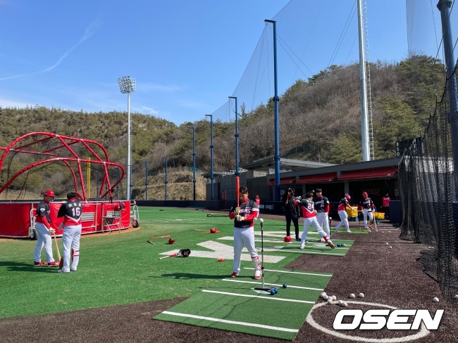 실제로 슬로우 모드였다. 투수들은 4~5번의 불펜피칭을 마치고 지난 2월 26일부터 라이브 피칭을 시작했다. 타자들도 그때서야 투수들의 실전용 피칭에 적응하려 타석에 들어섰고 한 번씩 볼을 때리기 시작했다. 캠프 한달 만에야 실전용 볼을 던지고 보기 시작했다. KBO리그의 다른 팀들도 자체 연습경기와 대외 연습경기에 돌입했다.