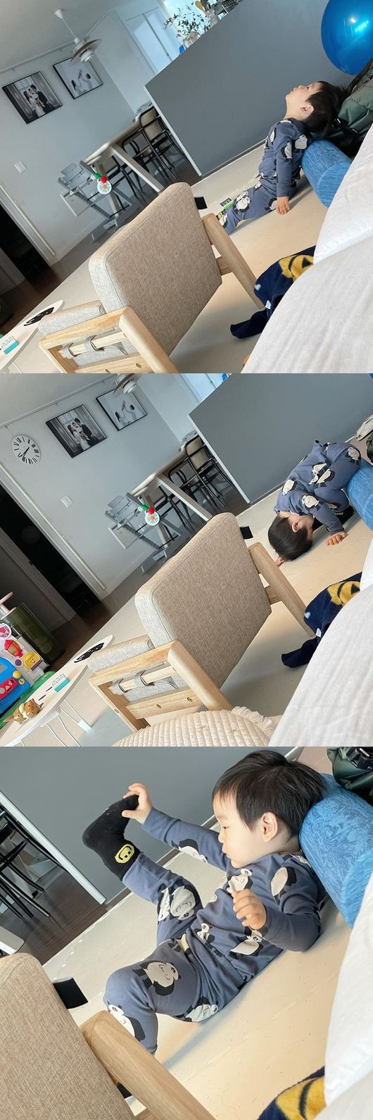 공개된 사진 속에는 서수연의 아들 담호가 거실에서 폼롤러를 이용해 놀고 있는 모습이 담겨 있다. 담호는 앉거나 기대서 스트레칭을 하더니, 다리까지 들어올리는 동작을 취했다. 여유가 넘치는 자연스러운 포즈가 웃음을 자아냈다.