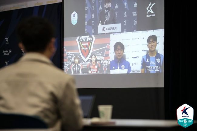 이번 동해안 더비 미디어데이는 코로나 이슈로 인해 화상으로 진행됐다. 홈팀 포항에서는 김기동 감독과 신진호, 원정팀 울산에서는 홍명보 감독과 원두재가 참석해서 치열한 설전을 펼쳤다.