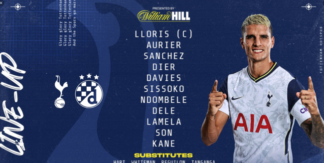 토트넘은 자그레브전도 총력전으로 나선다. 조세 무리뉴 토트넘 감독은 4-2-3-1을 택했다. 최전방에는 해리 케인이 배치됐다. 2선에는 손흥민-델레 알리-에릭 라멜라가 나섰다. 중원은 무사 시소코-탕귀 은돔벨레가 구축했다. 포백은 벤 데이비스-다빈손 산체스-에릭 다이어-세르주 오리에가 형성했다. 선발 골키포는 위고 요리스.