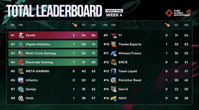 한국 대표 3팀 젠지, T1, 아프리카가 4주차에서는 웃지 못했다. 1~3주차까지 항상 상금권인 ‘톱4’에 이름을 올렸지만 4주차는 해외 팀들의 강세에 휘말리며 무너지고 말았다.