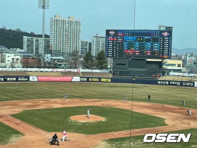 1회말 1사1루에서 터커가 타석에 들어서자 한화 내야수들은 모두 1루와 2루 쪽으로 몰렸다. 3루 자리는 텅 비어있는 시프트였다. 수베로 감독은 연습경기에서 이같은 시프트를 적극 시도하고 있다. 터커는 문동욱의 투구를 노려쳐 3루수 자리 옆으로 날아가는 직선타구를 날렸다. 공은 펜스까지 굴러갔고 그대로 선제점을 뽑아냈다.