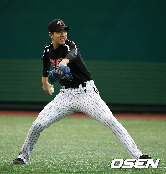 이날 선발 투수는 이민호가 등판한다. 류 감독은 "이민호는 오늘 50개 던진다. 정우영이 첫 등판한다. 이민호에 이어서 배재준, 이정용, 정우영, 남호, 고우석이 나설 예정이다"고 출전 투수들을 언급했다.
