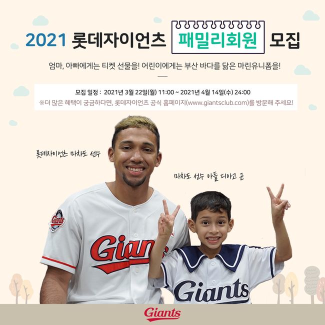 패밀리회원은 만 3세 이상 만 13세 이하 자녀가 있는 가족 팬들을 대상으로 마련된 롯데자이언츠의 신규 회원제도다.‘패밀리A 패키지(어른1명+어린이1명)’와 ‘패밀리B 패키지(어른1명+어린이2명)’ 두 가지로 구성돼 다양한 혜택을 제공한다.