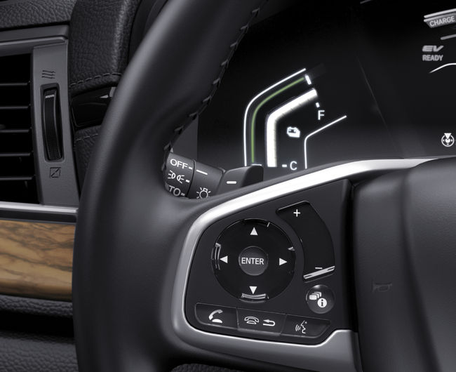 국내에 출시된 ‘뉴 CR-V 하이브리드’는 4WD EX-L과 4WD 투어링 2개 트림으로 운용되는데 모두 사균구동 시스템을 갖췄다는 것도 든든하다. ‘전자제어식 Real Time AWD’로 불리는 이 시스템은 일반 주행 때는 전륜구동으로만 작동하다가 필요시에 후륜에 구동력을 배분한다. 각종 센서가 주행 상황을 감지하면 전자 제어시스템의 명령에 따라 즉각적으로 구동력을 배분한다. 계기반에는 전후륜 구동력 배분 방식을 시각적으로 표시해 주는 화살표가 있다. 운전자가 인식하는 도로상황과 계기반의 화살표 그래프가 한몸처럼 움직이는 모습이 한 편의 군무를 보는 듯하다.