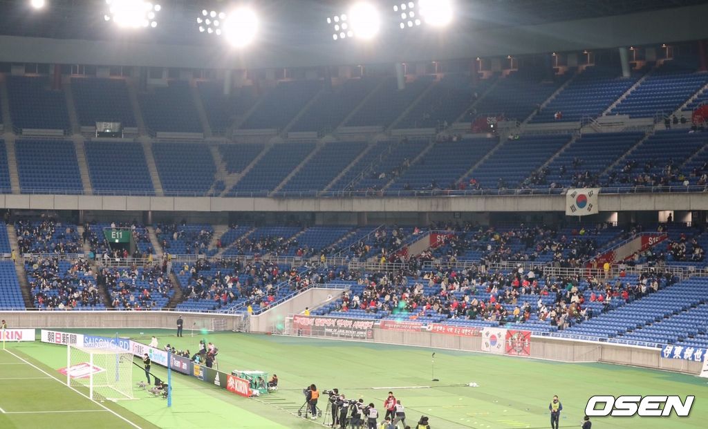 이날 일본은 7만 명 이상을 수용할 수 있는 경기장 좌석 중 1만석을 공개했다. 한국 응원단에는 동측에 2000석을 내줬다. 경기장을 찾은 관중은 8356명이었다.