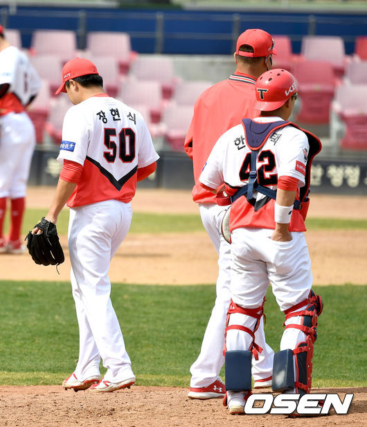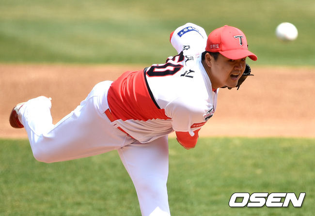 장현식은 "4회 실점 상황에서는 힘은 떨어지지 않았다, 주자가 있는 상황이라 결정구를 원하는데로 투구를 하지 못한 것 같아 실점한 것 같다. 다음 경기 때는 이런 부분을 보완해 피칭을 하겠다"고 약속했다. /sunny@osen.co.kr