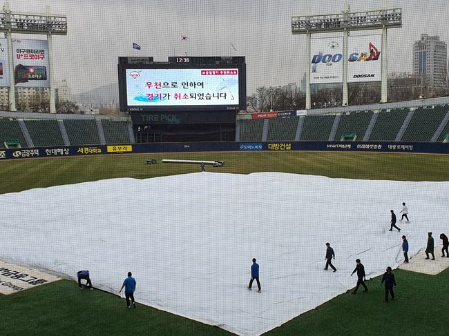 전국적으로 봄비가 내리면서 낮 12시 40분 기준으로 시범경기는 4경기가 취소됐다. 광주 키움-KIA전, 수원 NC-KT전, 인천 두산-SSG전도 우천으로 취소됐다.