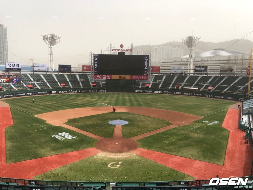 전국이 황사와 미세먼지로 뿌옇게 뒤덮인 가운데 부산 사직구장에서 열릴 시범경기는 개최가 가능할까