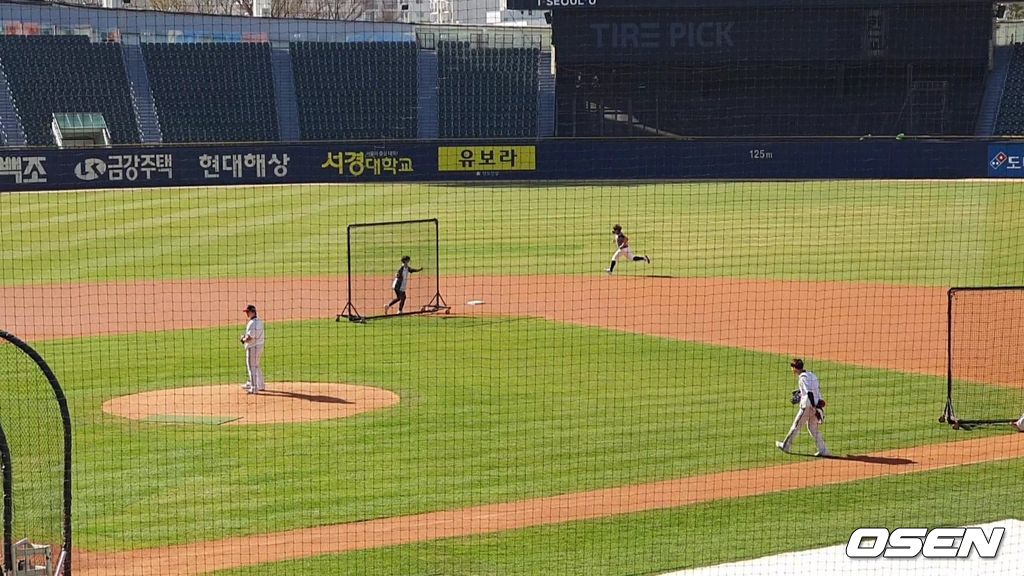 전날 야간 경기를 치른 LG 선수들은 이날 자율 훈련, 투수 몇 명이 외야에서 가볍게 캐치볼을 하는 수준이었다. 고우석, 정찬헌 등이 보였고, 켈리는 불펜 피칭을 했다. 사실상 훈련 휴식과 다름없는 풍경이었다.