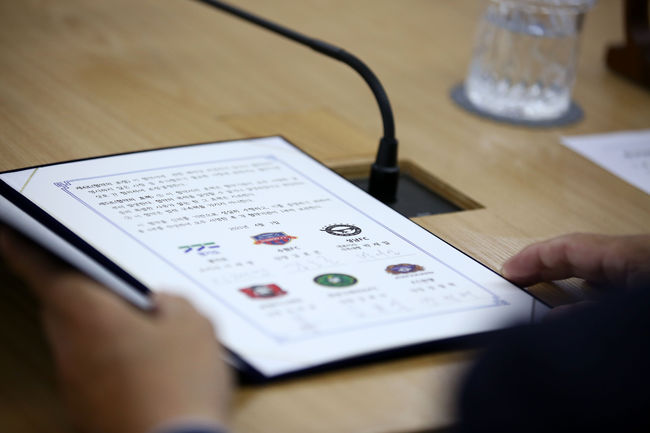 이재명 경기도지사는 1일 경기도청에서 도내 5개 시민프로축구단 단장과 ‘경기도와 시민프로축구단이 함께하는 축구인의 꿈, 기회, 희망 지원 업무 협약식’을 개최했다. 이날 협약식에는 도내 5개 시민구단 대표들(김호곤 수원FC 단장, 김성남 부천 단장, 김복식 안산 단장, 장철혁 안양 단장, 박재일 성남 대표 직무대행)과 한웅수 한국프로축구연맹 부총재, 박문성 K리그 해설위원 등이 참석했다. 이재명 지사와 5개 구단 단장은 ‘시민프로축구단 발전 및 축구 활성화를 위한 업무 협약서’에 서명하고, 시민구단 활성화를 통한 K리그 발전 방안에 대해서 의견을 나눴다.
