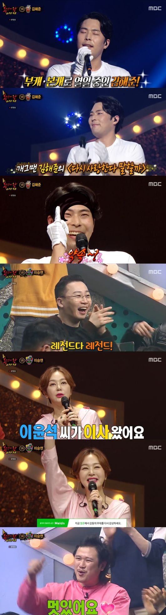 '복면가왕'에서 6주년 특집이 그려진 가운데, 김해준부터 이승연이 출연하며 시청자들의 눈과 귀를 사로 잡았다.
