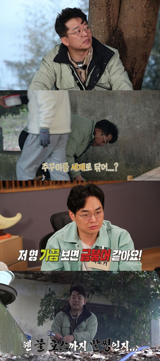이날 '안다행'에선 자급자족 라이프의 하이라이트와 함께 김준호의 '허당 매력'이 제대로 빛을 발할 전망. 그는 주꾸미를 세척하라는 장동민의 지시에 "주방 세제로 씻으면 되냐"라고 아무렇지 않은 듯 되물어 주위를 놀라게 한다.
