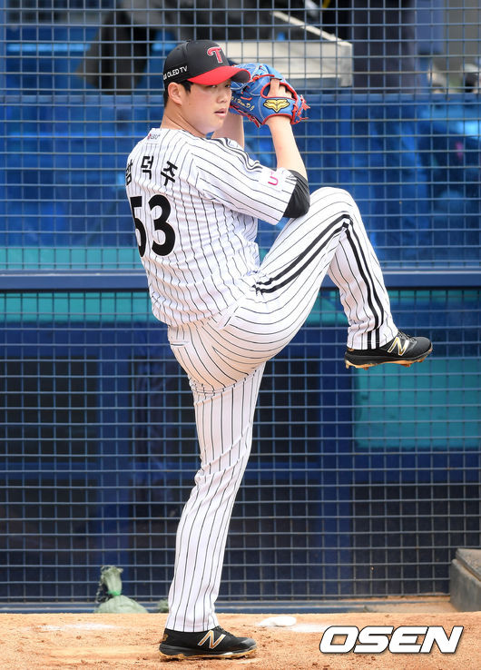 시범경기 도중 두산에서 LG로 트레이드로 온 좌완 함덕주가 홈 개막전 선발 투수의 영광을 안게 됐다.
