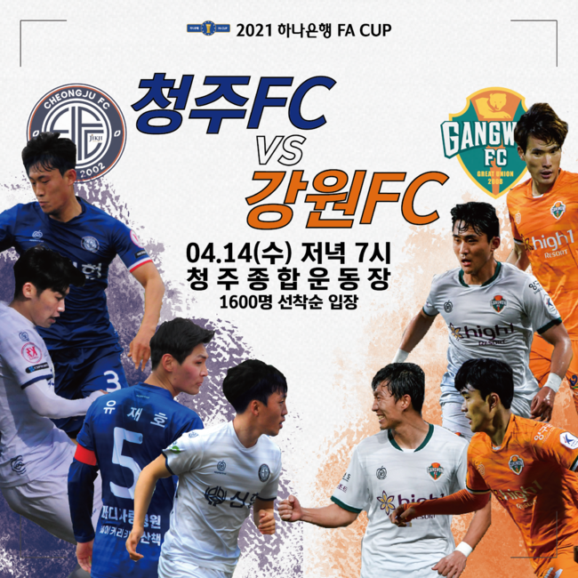 청주FC는 14일 청주종합운동장에서 FA컵 3라운드 강원FC와 맞대결을 펼친다. 무려 32년 만에 안방에서 프로구단과의 경기가 성사됐다.