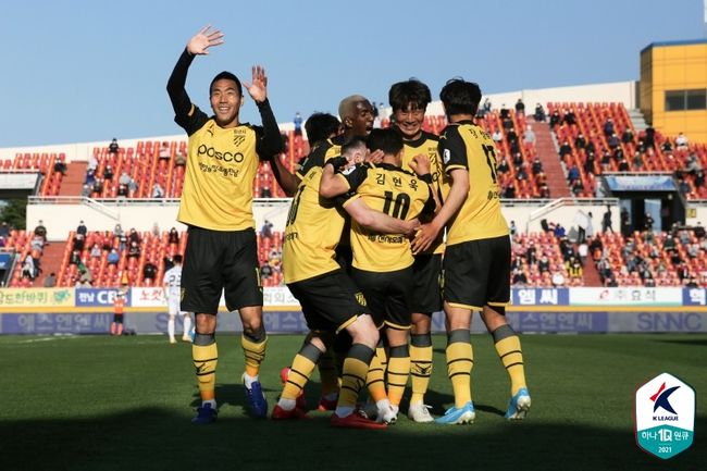 김천은 후반 추가시간에 정승현이 만회골을 넣었지만 역부족이었다.