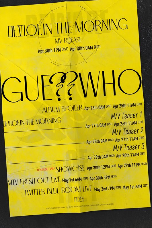 ITZY는 오는 30일 오후 1시(미국 동부시간 0시) 새 미니 앨범 'GUESS WHO'(게스 후)를 전 세계 동시 발매하고 전격 컴백한다. 한 시간 앞선 오후 12시에는 공식 유튜브 채널을 통해 온라인 쇼케이스를 개최한다.