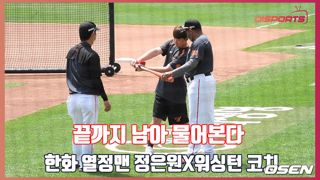 열정 넘치는 한화 정은원과 워싱턴 타격코치의 모습을 영상에 담았다. / dreamer@osen.co.kr