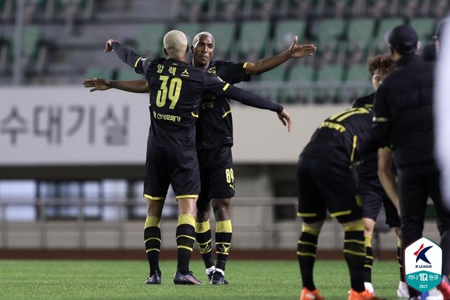 전남은 4일 부산구덕운동장에서 열린 '하나원큐 K리그2 2021 8라운드’에서 부산아이파크를 1-0으로 물리쳤다. 전남(승점 15점)은 선두 대전과 승점은 같아졌고, 골수에서 적어 2위에 올랐다.