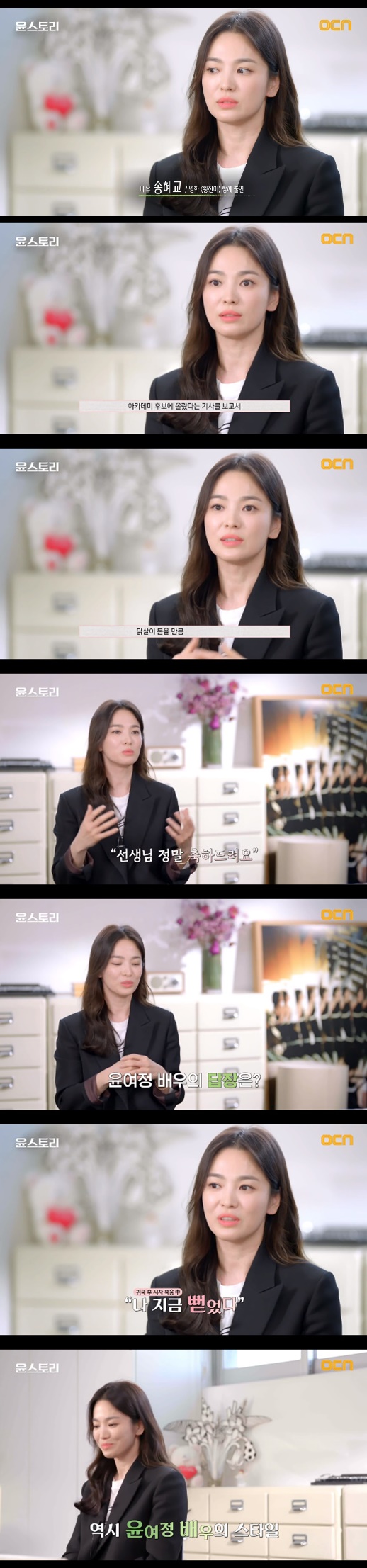 지난 24일 방송된 OCN 다큐멘터리 '윤스토리'에서는 배우 윤여정과 나눈 문자 내용을 공개한 송혜교의 모습이 그려졌다.