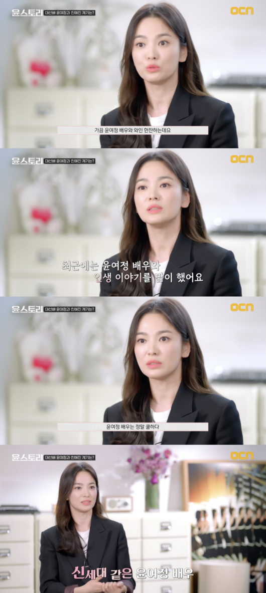 배우 송혜교가 윤여정에 대해 “쿨한 사람”이라며 존경심을 내비쳤다.