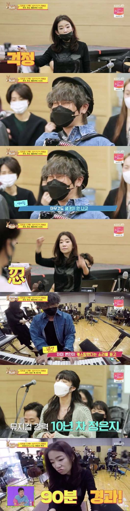 리허설의 시작은 케이윌이었다. 케이윌은 아코디언을 연주하며 노래까지 소화해야 했다. 긴장감 속에 시작했던 케이윌은 음이탈 실수를 내고 긴장했다. 김문정 감독 역시 알아차렸다. 케이윌은 “완전 블랙아웃이 된다. 아무 생각도 안 나고”라고 심경을 밝혔다.