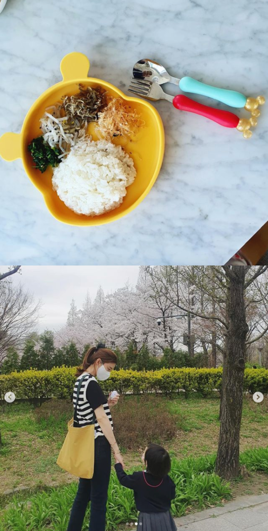사진에는 딸이 먹는 귀여운 밥상과 수저가 담겨 있다. 차예련은 딸을 위해 흰 쌀밥과 나물, 멸치와 건어물 반찬을 했는데 귀엽게 오물오물 먹을 모습이 절로 그려진다.
