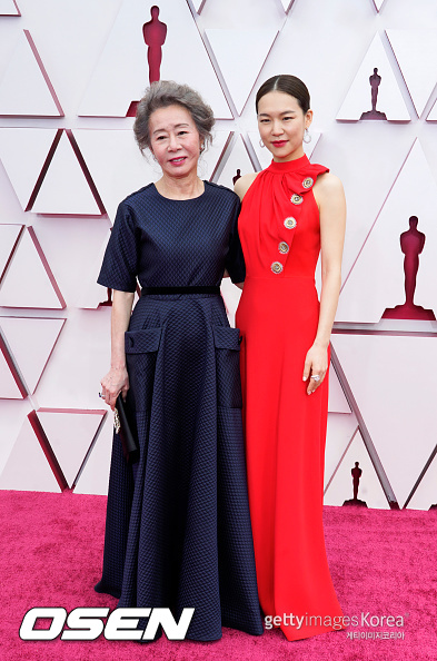 시상식 직전, 윤여정과 한예리는 레드카펫 행사에 모습을 드러냈다. 윤여정은 차분한 네이비 컬러의 드레스를 선택했고, 한예리는 정열적인 레드 컬러의 드레스를 착용해 극과 극의 매력을 발산했다.