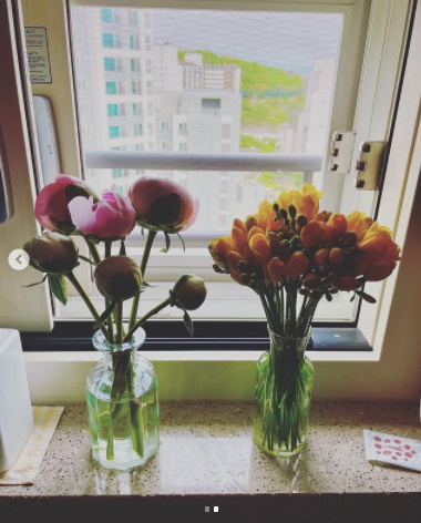 이후 다음 사진에서는 화병에 꽃을 꽂아 놓은 사진을 공개했다.