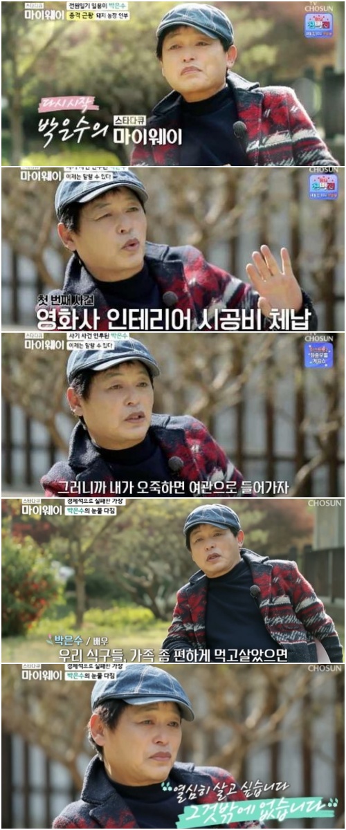 과거 지인들에게 배신 당해 돈을 날리기도 했다는 박은수. 그는 "성남에서 술집을 하다 망했다. 돈이 없는데 영화사 뭐 하자고 해서 돈이 없다고 했다. 인테리어 하는 사람들은 내 얼굴 보고 해줬는데 2년 정도 돈을 안 주니까 고소할 수밖에 없다. 사기로 몰려서 재판 받았다. 1억도 안 되는 돈을 못 갚아서 사기로 고소를 당하니까 이때까지 뭐 했나, 어떻게 살았나 싶다. 내가 판단 잘못해서 그런 거다. 내가 연락하면 받아준다. ’조금만 더 기다려 달라’는 게 10년이다"라고 밝혔다.