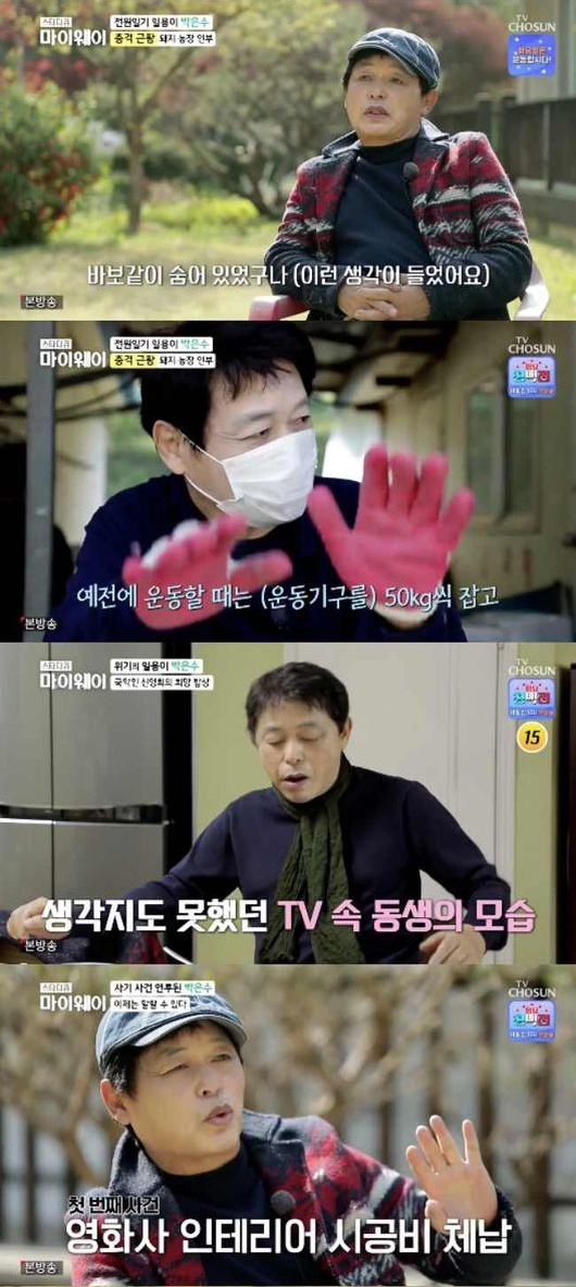 박은수가 돼지농장에서 인부로 일하게 된 배경에는 지인들에게 배신 당해 힘들었던 과거도 있었다. 그는 “성남에서 술집을 하다 망했다. 돈이 없는데 영화사 뭐 하자고 해서 돈이 없다고 했다. 인테리어 하는 사람들은 내 얼굴 보고 해줬는데 2년 정도 돈을 안 주니까 고소할 수밖에 없다. 사기로 몰려서 재판을 받았다. 1억도 안 되는 돈을 못 갚아서 사기로 고소를 당하니 이때까지 뭐 했나, 어떻게 살았나 싶다”고 그간의 마음 고생을 털어놨다.