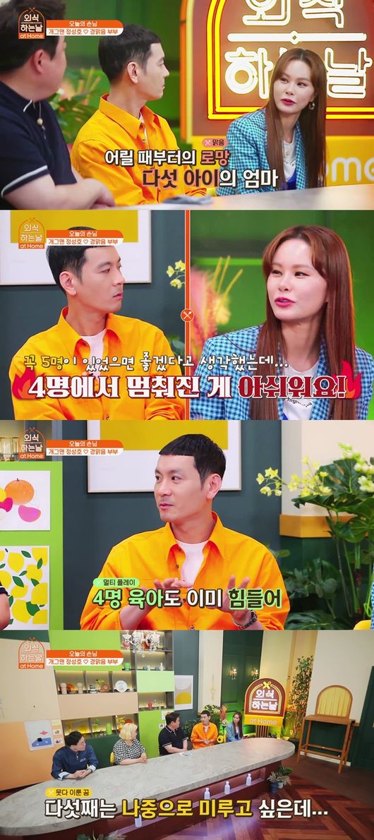‘외식하는날 앳 홈’ 정성호-경맑음 부부가 다섯 째를 언급했다.