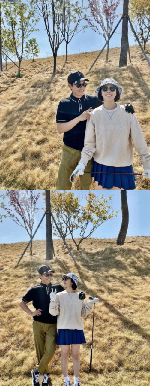함께 공개한 사진 속에는 골프복을 입은 채 다정한 포즈를 취하고 있는 두 사람의 모습이 담겨져 있다. 상큼함이 넘치는 봄날의 비주얼 부부다.