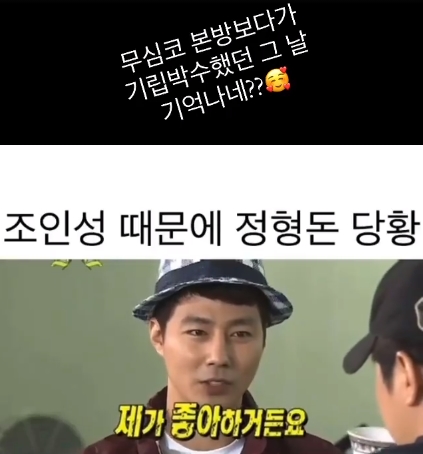 '정형돈의 아내' 한유라가 조인성이 출연한 '무도' 레전드짤을 공개했다.