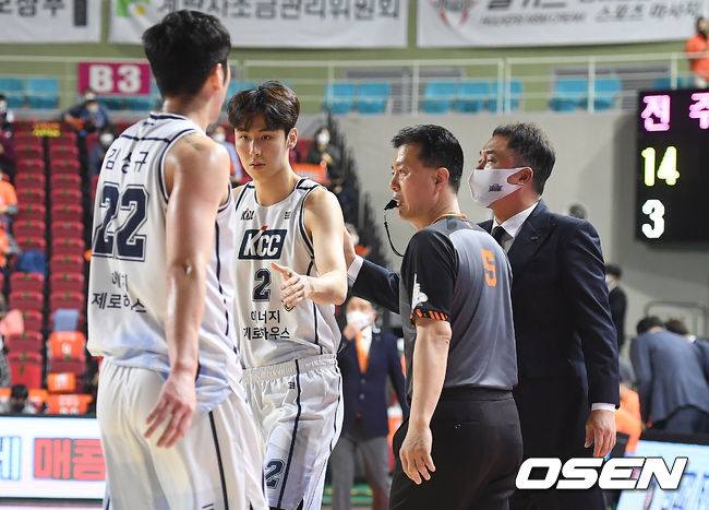 2쿼터 막판 라건아가 쳐낸 공이 하프코트를 넘어 김상규가 잡았다. 전자랜드가 파울을 했는데 U파울이 선언됐다. 전자랜드는 KCC의 하프코트 바이얼레이션이라고 주장했지만 받아들여지지 않았다. 분위기가 KCC로 다시 넘어갔다.