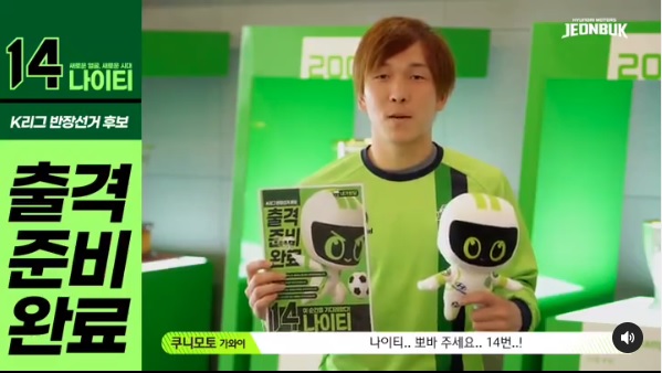 전북은 선수들도 '나이티'에 투표해 달라며 팬들에게 독려하고 있다. 이미 이용, 김보경, 이승기, 쿠니모토가 '나이티'에 응원을 보냈다. 특히 쿠니모토의 소개는 인상적이다. 한국말이 어색하지만 쿠니모토는 "나이티... 뽑아주세요. 14번. 나이티 귀엽다. 나도 귀엽다. 뽑아 주세요"라고 말했다. 쑥쓰러운 모습에 팬들의 관심이 폭발적이다. / 10bird@osen.co.kr