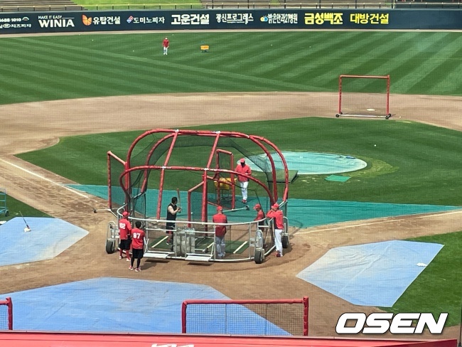 나지완은 28일 한화와의 광주 2차전을 앞두고 왼쪽 내복사근(옆구리) 통증으로 열흘짜리 부상자명단에 등재됐다. 그런데도 민소매 옷을 입고 타격훈련에 나섰다. 맷 윌리엄스 감독도 직접 참여해 1대1 과외를 했다.