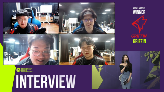 그리핀은 28일 오후 온라인으로 열린 '2021 펍지 위클리 시리즈: 동아시아(이하 PWS)’ 페이즈1 위클리 서바이벌 3주 1일차 매치3에서 USG를 따돌리고 치킨을 잡아내면서 위클리 파이널행 티켓을 거머쥐었다. 3주 연속 첫 날 진출을 확정하면서 '치킨 룰'의 강자임을 보였다.