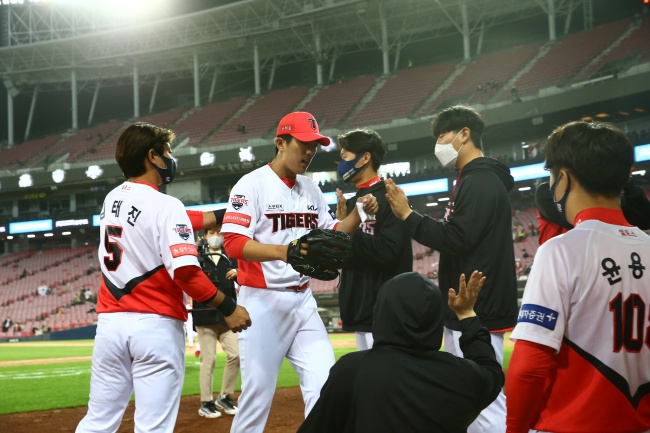 KIA는 28일 광주-기아 챔피언스필드에서 열린 '2021 신한은행 SOL KBO리그' 한화 이글스와의 경기에서 4-0으로 승리했다. KIA는 이틀 연속 승리하며 위닝시리즈를 확보했다. 11승10패로 5할 승률도 넘었다.