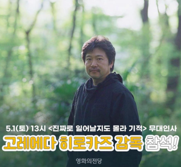 고레에다 히로카즈 감독이 참석하는 ‘진짜로 일어날지도 몰라 기적’(수입 미로비젼, 배급 스튜디오보난자)의 특별 무대인사는 내달 1일(토) 오후 1시 시네마테크 부산에서 열린다.