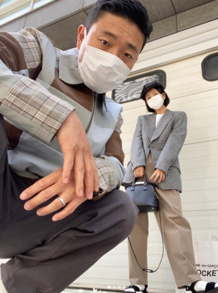 공개된 사진 속 강개리와 아내는 데이트에 나선 모습이다. 두 사람은 마치 모델처럼 다양한 자세를 취하며 셀카를 촬영하는 모습으로, 톤을 맞춰 입은 스타일리시한 패션이 돋보인다.
