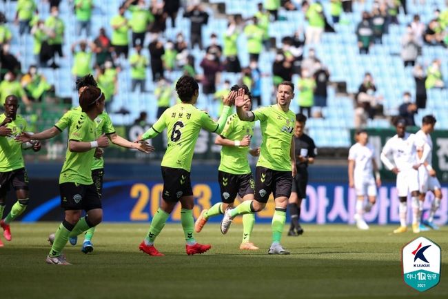전북 현대는와 제주 유나이티드는 2일 전주월드컵경기장에서 하나원큐 K리그 1 2021 13라운드 맞대결서 1-1 무승부를 기록했다.