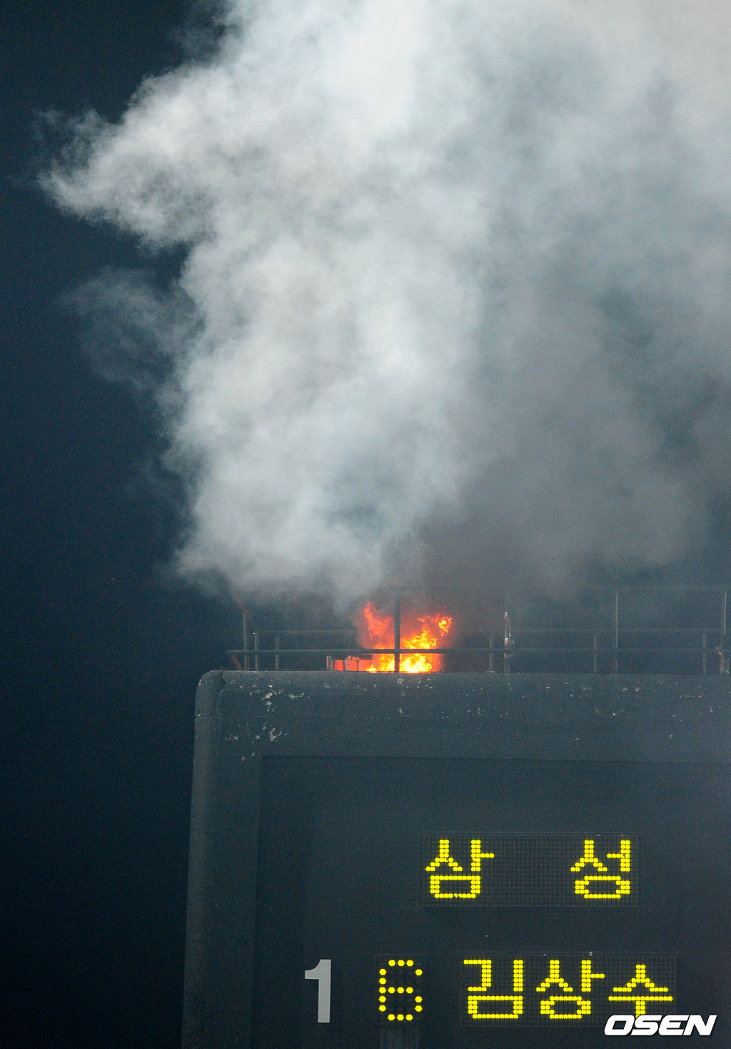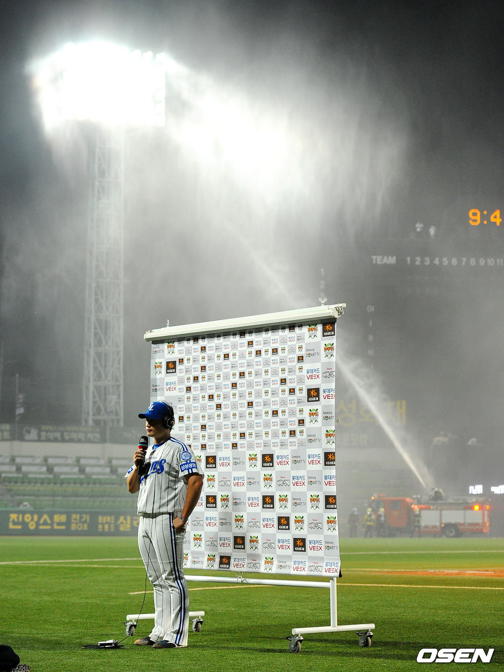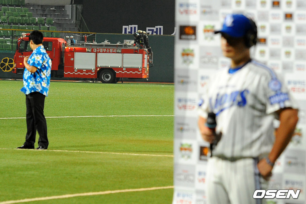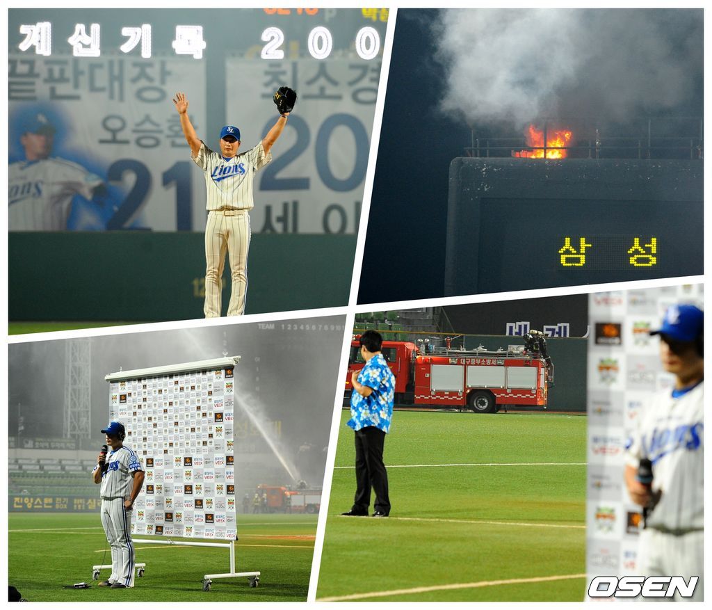 오승환이 방송 인터뷰를 진행하는 사이 대구구장 전광판 좌측 상단에 설치된 폭죽 발사대에서 불이 났다. 뒤늦게 잘못터진 불발탄이 원인이었다.