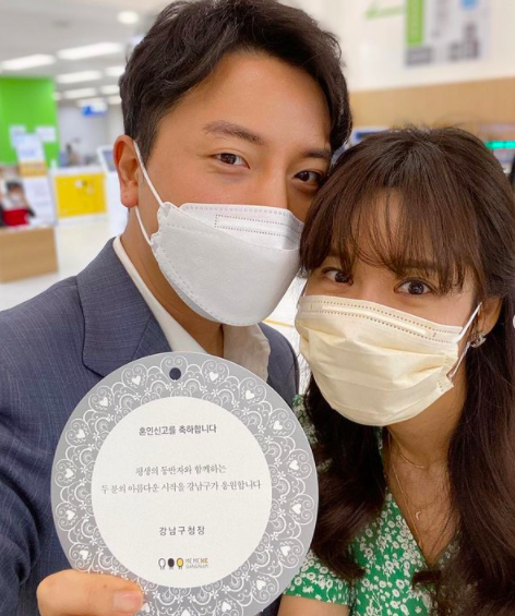 함께 공개한 사진 속에는 연예인 뺨치는 훈남 남편과 함께 혼인신고를 완료한 후 다정한 포즈를 취하고 있는 김준희의 모습이 담겨져 있다. 행복한 부부의 모습이 보는 이의 미소를 자아낸다. 축하 댓글이 쏟아졌다.