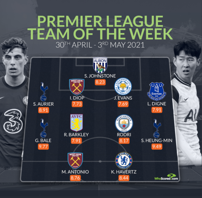 후스코어드닷컴은 손흥민과 베일을 EPL 34라운드 베스트 11에 선정했다. 4-4-2로 구성된 가상 라인업에서 베일이 오른쪽 손흥민이 왼쪽 측면에서 공격을 이끄는 방식이었다. 여기에 오리에도 오른쪽 풀백에 위치했다.