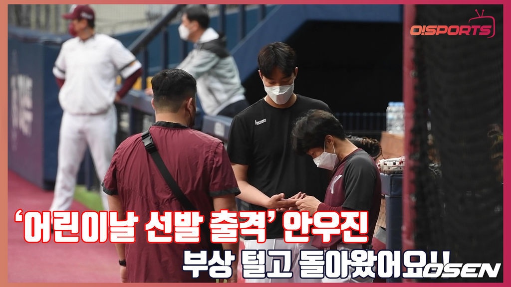 이후 그라운드로 들어서 스태프에게 손가락 상태를 점검받은 안우진. 돌다리도 두드리는 심정으로 스태프와 한참 동안 대화를 나눈 안우진은 코치들을 찾아 인사하며 선발 출격을 향해 마음을 다잡았다.